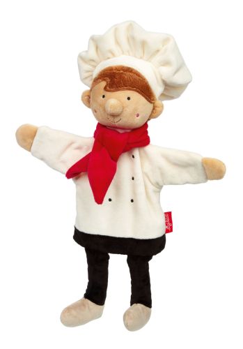 Handspielpuppen haben aus gutem Grund eine lange Tradition, denn Kinder lieben die fröhlichen Figuren und tauchen völlig ein in ihre Abenteuer. Bald schon beginnen die Kleinen, Geschichten nachzuspielen und selbst zu erfinden. Spielerisch trainieren sie so ihre Sprache, Kreativität, Empathie und auch Feinmotorik. Zusätzlich zum klassischen Kasperltheater bieten wir kleinen Puppenspielern auch alltägliche Charaktere, wie diese Handspielpuppe Koch. Unsere Figuren mit lustiger Knubbelnase sind aus Microfaserplüsch und zeigen liebevolle Details passend zu ihrem Charakter.